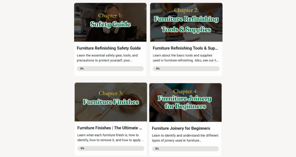 Learn by watching real projects come to life! Alongside the book chapters, you’ll also get access to exclusive furniture makeover videos where you can see the techniques in action.